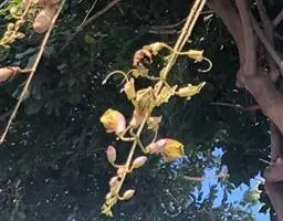 黄波罗花,别名黄花角蒿, 黄波罗花(图2) (学名:Incarvillea lute buret Franch )紫葳科,角蒿属多年生草本植物,具茎,高达1米。生于海拔2000-3350米的高山草坡或混交林下。顶生总状花序有花5-12朵,着生于茎的近顶端,花冠黄色。根入药,有滋补作用。