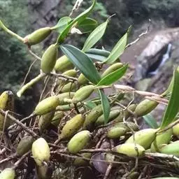 具槽石斛:茎通常直立,肉质,扁棒状,下部收狭为细圆柱形,不分枝,具纵条纹和数个节。叶纸质,数枚,…