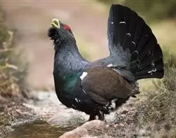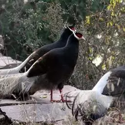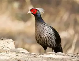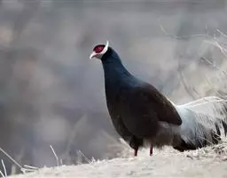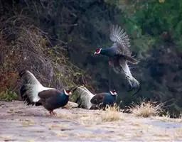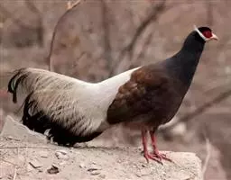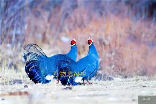 蓝马鸡(学名:Crossoptilon auritum)是珍稀名贵的禽类,羽毛美丽,可作装饰用,头侧绯红,耳羽簇白色、突出于颈部顶上,通体蓝灰色,中央尾羽特长而翘起。尾羽披散下垂如马尾,故名蓝马鸡。