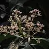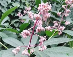 密鳞紫金牛(A. densilepidotulaMerr.)是这个类群里具有较高观赏价值的一种,也是著名的药用植物。晚春时节,一树繁花、赏心悦目;时至初秋则满身紫果,别有一番韵味。为紫金牛科紫金牛属小乔木,原产海南岛,因花、果、叶均密被鳞片而得名,别名:罗芒树,山马皮,黑度,仙人血树等。其株高2米左右,小枝粗壮,皮粗糙;叶片革质,卵形;圆锥状花序顶生;圆形的小花粉红泛紫,盛花期时呈波浪式悬挂着,密密麻麻、层层叠叠、热闹非凡,花期可长达2月;果期则变成挂满小小的球果,颜色由青绿慢慢变红,再至紫黑。自始至终都是凝焦聚目,惹人喜爱。除了这一树繁花、满身硕果的美,其树皮还可入药,有养血化瘀之功效。