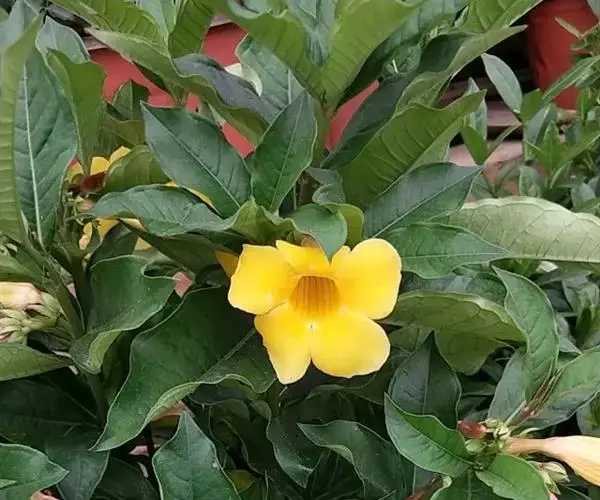 黄蝉属,夹竹桃科,约15种,分布于热带美洲,中国引入栽培的有黄蝉A. neriifolia Hoo…