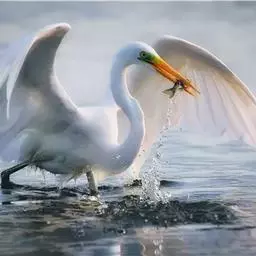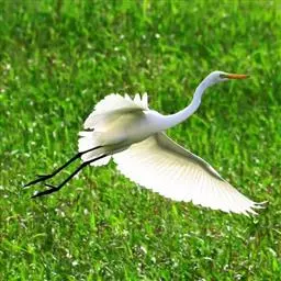 大白鹭 体态纤瘦,乳白色:夏羽的成鸟繁殖时枕部着生两条狭长而软的矛状羽,状若双辫;肩和胸着生蓑羽,冬羽时蓑羽常全部脱落,虹膜黄色;脸的裸露部分黄绿色,嘴黑色,嘴裂处及下嘴基部淡角黄色;胫与脚部黑色,趾呈角黄绿色。通常简称为白鹭。小白鹭场栖息于稻田、沼泽、池塘间,以及海岸浅滩的红树林里。常曲缩一脚于腹下,仅以一脚独立。白天觅食,好食小鱼、蛙、虾及昆虫等。繁殖期3~7月。繁殖时成群,常和其他鹭类在一起,雌雄均参加营巢,次年常到旧巢处重新修葺使用。卵蓝绿色,壳面滑。雌雄共同抱卵。卵23天出雏。