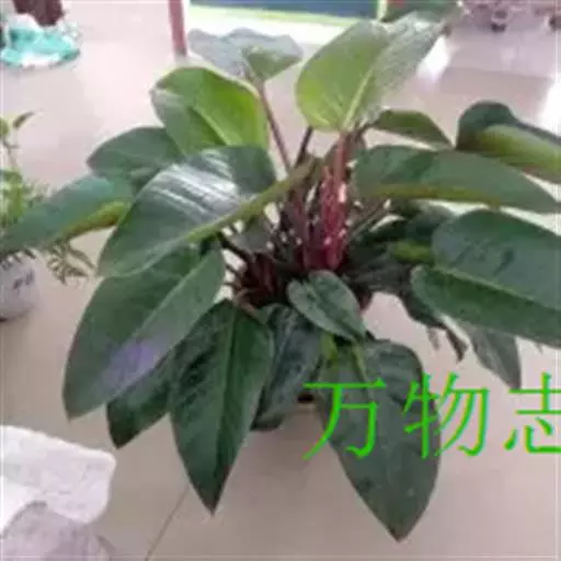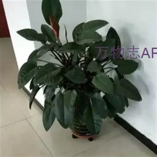 绿帝王蔓绿绒,天南星科蔓绿绒属,绿帝王茎干节间短,幼龄时看似叶片基生,但植株长大下部老叶脱落后,其木质化的茎就会显露出来,呈灰褐色;叶片巨大,常呈莲座状簇生于茎顶;叶片深绿色,并有光泽;宽披针形,基部心形,尖端常微下垂。