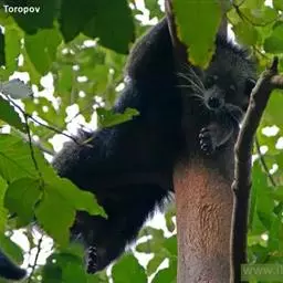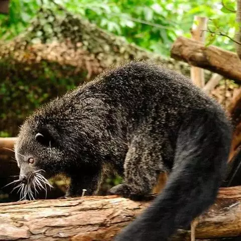 熊狸别名熊灵猫,为灵猫科下的第二大物种。貌似小黑熊,长着一条与身长差不多长的粗壮尾巴。其体毛黑色蓬松,…