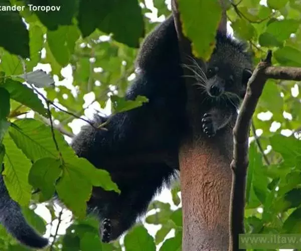 熊狸是中国最大的一种灵猫科动物,是灵猫科中体形第二大的种类,雌性体形比雄性大出20%,形似小黑熊。熊狸尾末端具缠绕性,能缠住树枝支撑身体觅食。毛被长而稀疏,粗糙而蓬松。绒毛长而呈波浪状。足垫大,几乎覆盖整个足底。