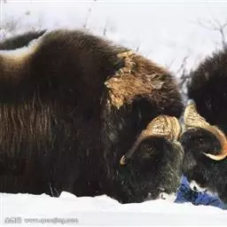 麝牛,是偶蹄目牛科麝牛属哺乳动物。麝牛体型大,但低矮粗壮,头大,吻部宽,眼小;雌雄均具角,四肢短粗,…