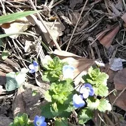 婆婆纳(拉丁文名:Veronica didyma Tenore ):一年至二年生草本植物,有短柔毛。有蓝、白、粉三种颜色。茎自基部分枝,下部匍匐地面。三角状圆形或近圆形的叶子在茎下部对生,上部互生,边缘有圆齿。早春开紫红色小花,单生于苞腋。果期3-5月。