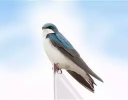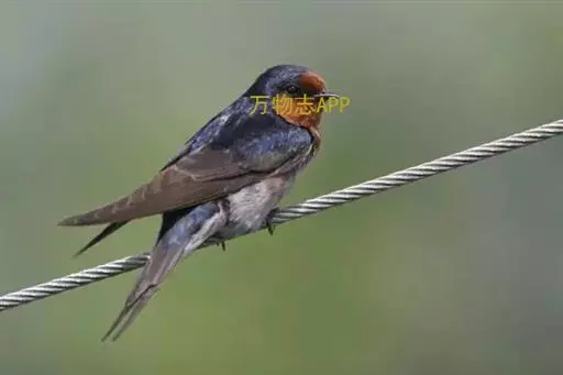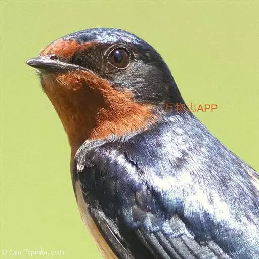 • 线尾燕,腹部接近纯白色,背部则为深紫色,头部的羽毛是栗色的。