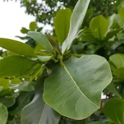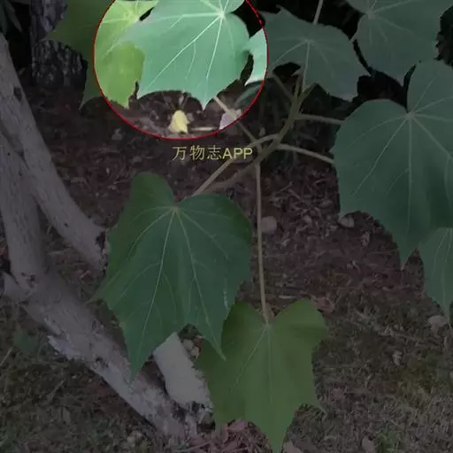 大乔木,高15米或更高,树皮褐黑色,纵裂而剥落状;枝平展,近顶部密被棕黄色的绒毛,具密而明显的叶痕。叶大,互生,常密集于枝顶,叶片倒卵形,长12-22厘米,宽8-15厘米,先端钝圆或短尖,中部以下渐狭,基部截形或狭心形,两面无毛或幼时背面疏被软毛,全缘,稀微波状,主脉粗壮,上面下陷而成一浅槽,背面凸起,且于基部近叶柄处被绒毛,侧脉10-12对,网脉稠密;叶柄短而粗壮,长10-15毫米,被毛。