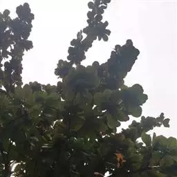 榄仁树(学名:Terminalia catappa L.)是使君子科诃子属植物,大乔木,高15米或更高,树皮褐黑色,纵裂而剥落状;枝平展,近顶部密被棕黄色的绒毛,具密而明显的叶痕。叶大,互生,常密集于枝顶,叶片倒卵形,长12-22厘米,宽8-15厘米。穗状花序长而纤细,腋生,长15-20厘米,雄花生于上部,两性花生于下部。果椭圆形,常稍压扁,具2棱,棱上具翅状的狭边,两端稍渐尖,果皮木质,坚硬,成熟时青黑色;种子一颗,含油质。花期3-6月,果期7-9月。