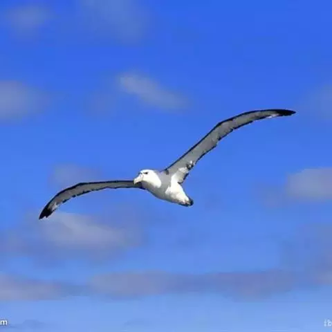 黑背信天翁:是一种中等体型的信天翁,81厘米长,体重2210-2800克,是一种有极长翼羽的大鸟,…