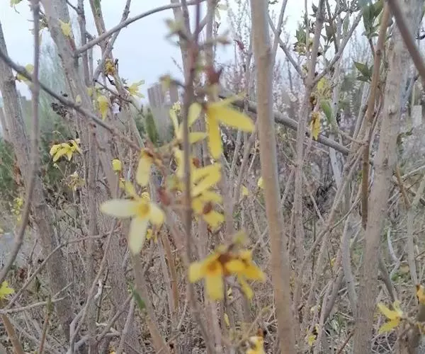 据公园的育花专家讲,连翘属名贵花木,往年均在阳春三月开花,可能由于植物花期后气候与开花的季节相似,导致植物内部规律发生紊乱,诱使连翘反季开花。“二次开花”竞相争艳,实属罕见。
