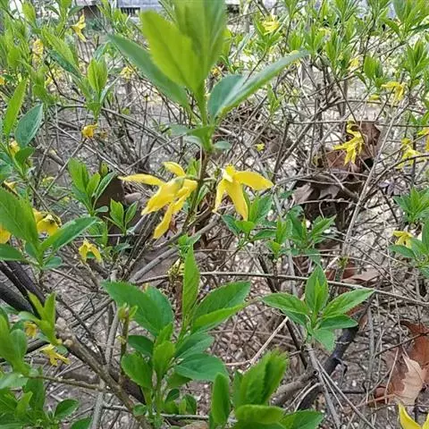 毛连翘(变型)Forsythia suspensa f. pubescens Rehd.:与原变型区别在于该变型的幼枝、叶柄以及叶片上面均被短柔毛,而叶片下面被柔毛或短柔毛,尤以叶脉为密。花期4月。