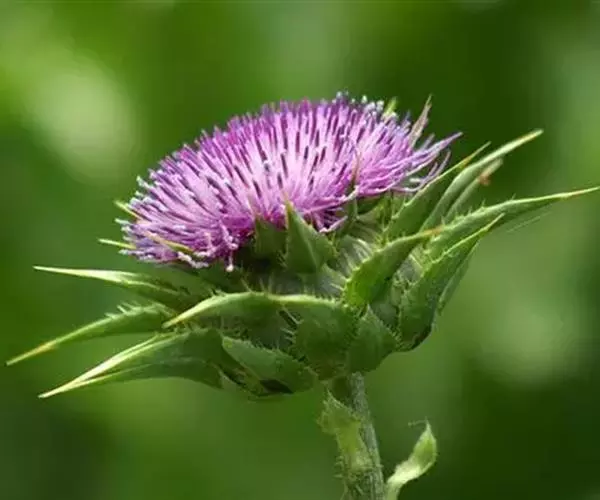 水飞蓟(学名:Silybum marianum (L.) Gaertn.)是菊科,水飞蓟属一年生或二年生草本植物,高可达1.2米。茎直立,有条棱,极少不分枝,叶片两面同色,绿色,有白色花斑,质地薄,头状花序较大,总苞片中外层宽匙形,椭圆形、长菱形至披针形,苞片无毛,中外层苞片质地坚硬,革质。小花红紫色,少有白色,花丝短而宽,瘦果压扁,冠毛多层,刚毛状,白色,5-10月开花结果。