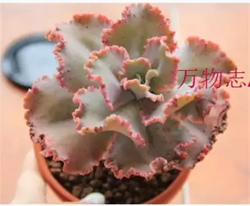 高砂之翁(外文名Echeveria ‘Takasago No Okina') 是景天科,拟石莲花属的多肉植物。特征是其边缘呈大波浪卷形的宽大叶片,颜色随光照变化从蓝紫到橙红变幻不定,是一种具有别样魅力的拟石莲品种。