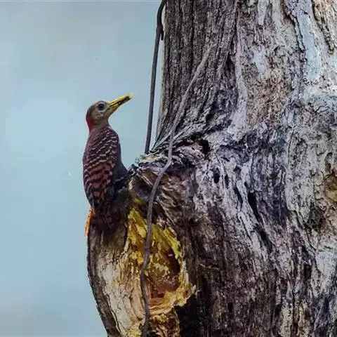 金喉拟啄木鸟,是须鴷科、拟啄木鸟属的鸟类。金喉拟啄木鸟为小型鸟类,体长19-24厘米。额深红色,…