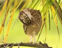 黄嘴角鸮:小型鸟类,体长18-21厘米。的茶黄褐色角鸮。眼黄色,嘴奶油色,特征为无明显的纵纹或横斑,…