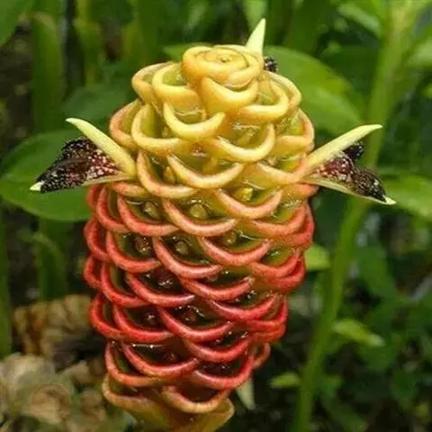 珊瑚姜是姜科、姜属植物。株高近1米。叶片长圆状披针形或披针形,长20-30厘米,宽4-6厘米,…