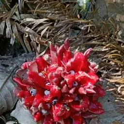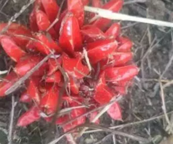 在春日和炎夏,碧叶婆娑,葳蕤成丛。每当秋风萧瑟、百花纷谢时节,其根茎处便会涌现出硕大的紫红色蕾果,开裂时妖艳妩媚、芬芳怡人,犹如奇花绽放。