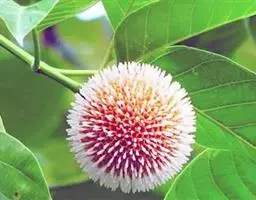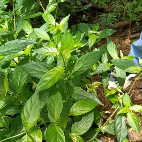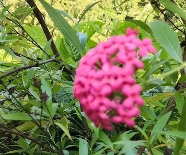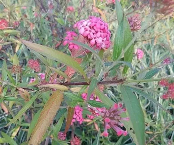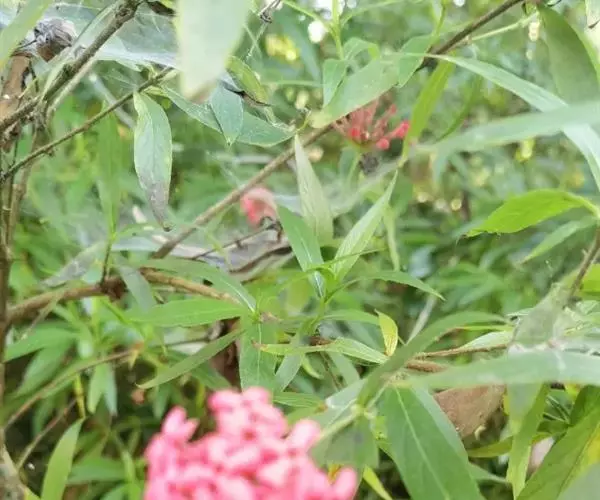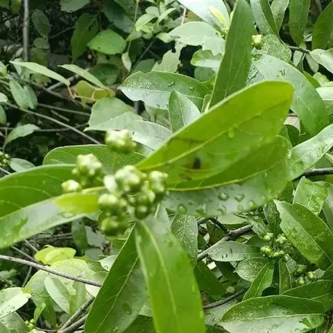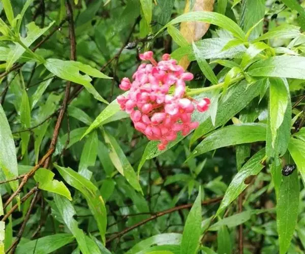 银叶郎德木叶片细长,披针形,正面绿色有光泽,背面带银白色,故名。花较小,小花聚集生。