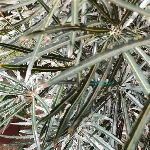 ⑵狭叶孔雀木:又称维奇氏假惚木、手树,掌状复叶,形似手掌,小叶窄长,灰绿色,小叶周边深红色,中肋粉红色。