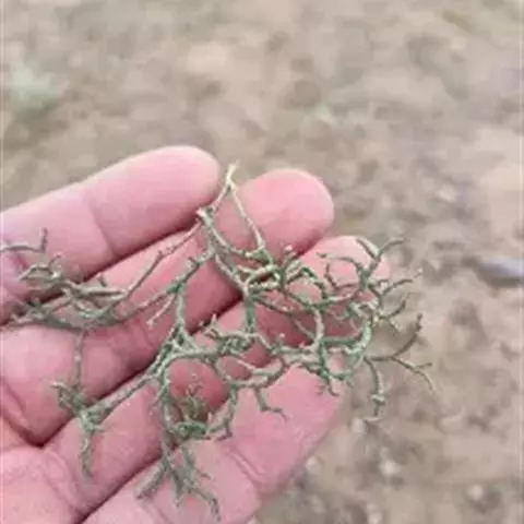 主茎通体呈不是很规则的羽状分枝,不呈“之”字形,具关节,禾秆色,主茎下部直径0.6-1.2毫米,茎近四棱柱形或具沟槽,维管束2条;侧枝10-20对,像主茎2-3回羽状分枝,小一样发达,枝排列稀疏,不规则,主茎上相邻分枝相距2-5厘米,分枝无毛,背腹压扁,末回分枝连叶宽3-6毫米。