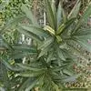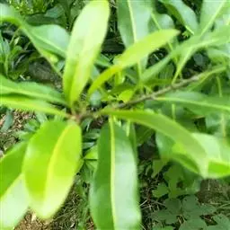 叶互生,簇生枝端,戟形或匙形,长 20-30 公分,宽 2-5 公分,顶端短渐尖或突尖,基部狭楔形,全缘,薄革质 叶子典型特征 ;叶面深绿色,中脉凹陷;叶背浅绿色,中脉稍凸起;两面均平滑无毛,仅叶背之中脉边缘被柔毛;羽状侧脉 30-40 对,两面扁平,近水平横出,未达叶缘网结成边脉;叶柄长 4-7 公分,上面基部具腺体,无毛;无托叶。