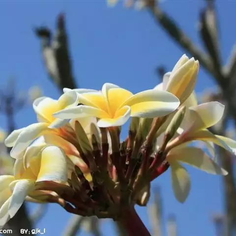 落叶小乔木,原产巴拿马、哥伦比亚、委内瑞拉。株高 2-4 公尺,全株枝叶光滑;枝干直挺生长,嫩枝绿色,成熟枝灰色;枝条圆筒形,粗壮而带肉质,无毛,具丰富乳汁,落叶后具明显叶痕。其树姿屹立傲然,有别于寻常缅栀的圆伞型树冠,叶片戟形或匙形,顶端短渐尖或突尖,花大而白,多而锦簇。
