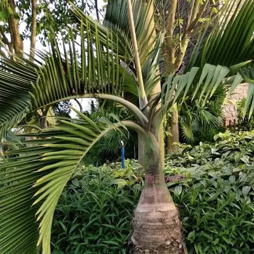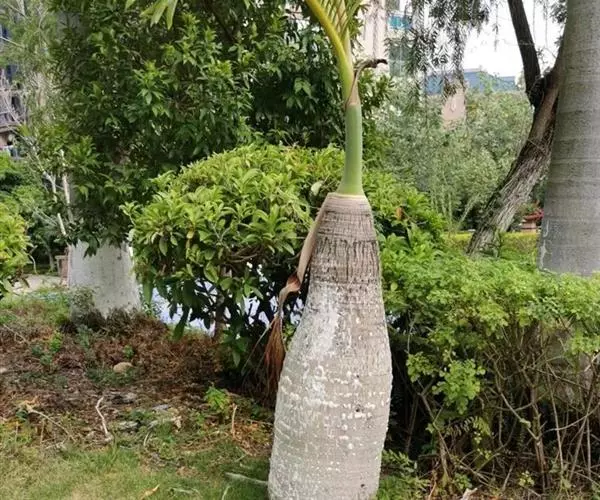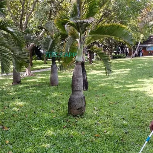 椰心叶甲:酒瓶椰很容易遭受椰心叶甲的危害,尤其温季节。当酒瓶椰遭受椰心叶甲的危害。取灌药 (绿福水剂和乙酰甲胺磷水剂)处法 ,不见效果,其心叶仍然继续枯黄。茎烂可将腐烂处以及以上部分全部砍掉,并水分干后喷施多菌灵1000倍和甲基托布律倍的混合杀菌液,以后加强浇水以保持伤湿润。