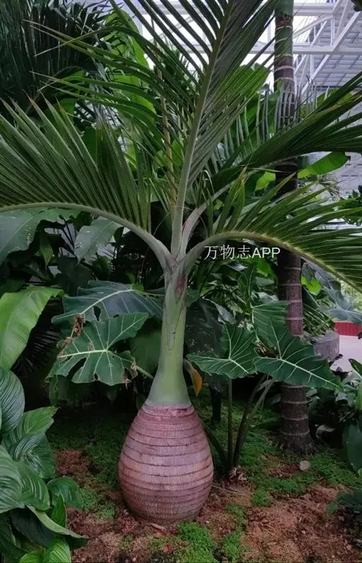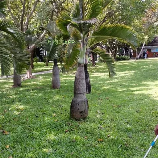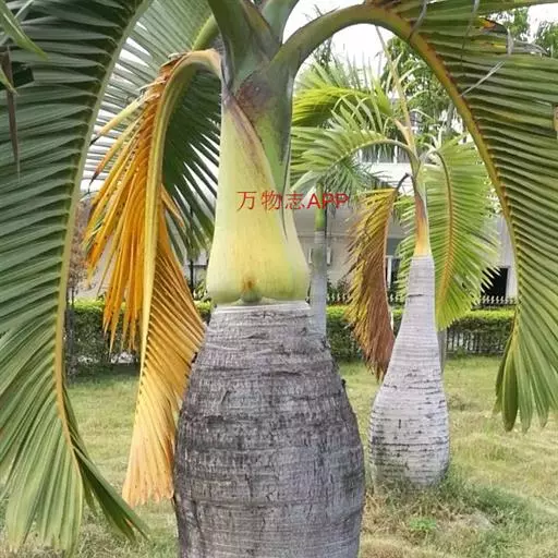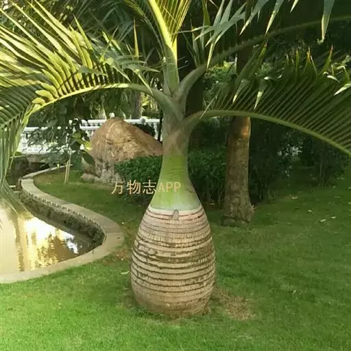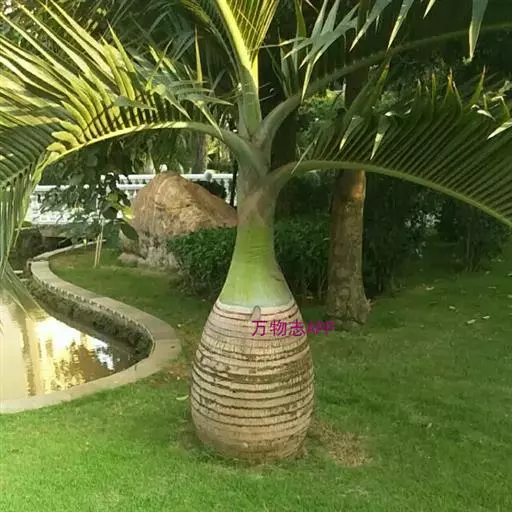 羽状叶,拱形,旋转,整齐排列成2列,在基部侧向扭转而使羽片叶面与叶轴所在平面成45°,形成优美的叶冠茎,特别是其茎干光滑而中下部膨大,形似酒瓶,更具观赏价值。不论室内盆栽,还是庭院栽培都是优良的观赏绿化树种。
