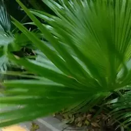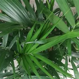 细叶棕竹,灌木,茎细如竹,多数聚生,有网状叶鞘。叶半圆形,掌状深裂,裂片狭长,阔线形,软垂,裂片7…