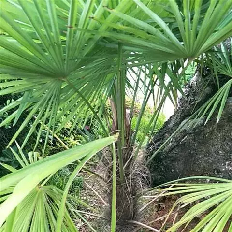 蒲葵 R. Br. ex Mart.),棕榈科蒲葵属木本植物。叶为扇形,两面均为绿色,…