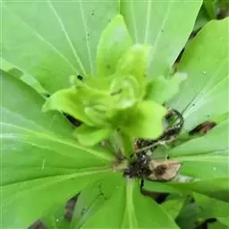 4、刺足根螨成螨乳白色,洋梨形。此螨在地下危害球根,一般先危害鳞茎的蒂部,逐渐扩展向上,被害部位变黑腐烂,严重时造成整林死亡。防治力法:鳞茎贮藏时注意通风和干燥,对受害的鳞茎,收获后、贮藏前用40%三氯杀螨醇1000倍液浸泡2分钟,可起到防治作用。