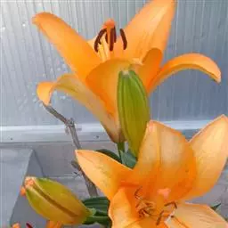 切花的采收、贮存和运输通常在茎上最低的一个花蕾充分着色时采收。剪花最好在早晨进行。麝香百合的花蕾膨大而呈乳白色时为采收适期,一般是开花前的1-2天采收。花枝剪下后按照花蕾数目、花茎长度和坚硬度进行分级,去掉下部10cm的叶子,每10支扎成一束。为了防止脱水,整个加工过程最多能持续1h。为了不影响种球的生长,要给植株留下足够的茎叶。不能立即运出的切花应于冷藏室中存放,插入水中,温度控制在2一3 0C,可贮藏1周。廖香百合切花运输时应装在有孔的盒子里,防止开放的花朵产生高浓度的乙烯,造成花萎蔫和落蕾。最好使用保温车,温度控制在2一3℃。 已开的花朵,包装时花瓣容易损伤,同时花粉易造成花瓣污染,使切花品质大为下降。因此,如遇已开的花朵,最好小心将花药剪掉。