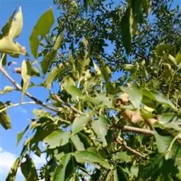 落叶大乔木,高达19米,胸径达1.5米;树皮深灰色,老时纵裂;营养枝常呈棘刺状。小枝挺直,被细绒毛或无毛。羽状复叶长7-15厘米;叶柄长3厘米,基部不增厚;叶轴具狭翅,小叶着生处有关节,至少在节上被短柔毛;小叶7-9(-11)枚,革质,披针形至卵状披针形,长1.7-5厘米,宽0.6-1.8厘米,先端渐尖,基部楔形,叶缘具锐锯齿,上面无毛,下面沿中脉基部被短柔毛,侧脉6-7对;小叶柄长3-4毫米,被细柔毛。