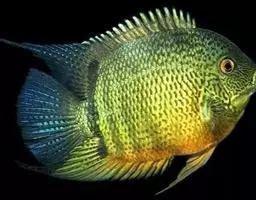 金菠萝鱼,Cichlasoma severum,慈鲷科丽体鱼属。成鱼体长20~25cm,厚侧扁形,…