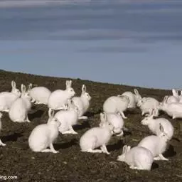 北极兔, 是兔科、兔属的哺乳动物。北极兔体型巨大,头比一般的兔子大且长,耳朵较小,腿长,…