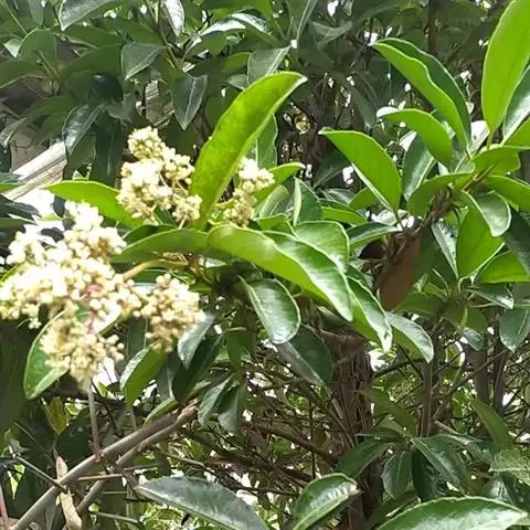 日本珊瑚树(学名:Viburnum odoratissimum Ker-Gawl. var. awabuki (K. Koch) Zabel ex Rumpl.)是忍冬科荚蒾属植物,常绿灌木或小乔木,高10米左右。 树冠倒卵形,枝干挺直,树皮灰褐色,具有圆形皮孔。叶对生,表面暗绿色,常年苍翠欲滴。 。圆锥花序通常生于具两对叶的幼技顶;花冠筒长3.5-4毫米;花柱较细,长约1毫米。果核通常倒卵圆形至倒卵状椭圆形,长6-7毫米。花期5-6月,果熟期9-10月。