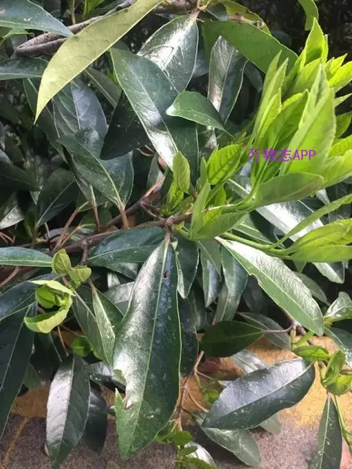 常绿灌木或小乔木,高10米左右。 树冠倒卵形,枝干挺直,树皮灰褐色,具有圆形皮孔。叶对生,表面暗绿色,常年苍翠欲滴。 叶倒卵状矩圆形至矩圆形,很少倒卵形,长7-13(-16)厘米,顶端钝或急狭而钝头,基部宽楔形,边缘常有较规则的波状浅钝锯齿,侧脉6-8对。