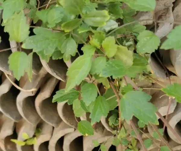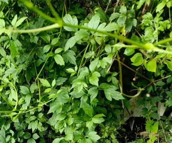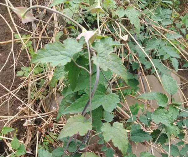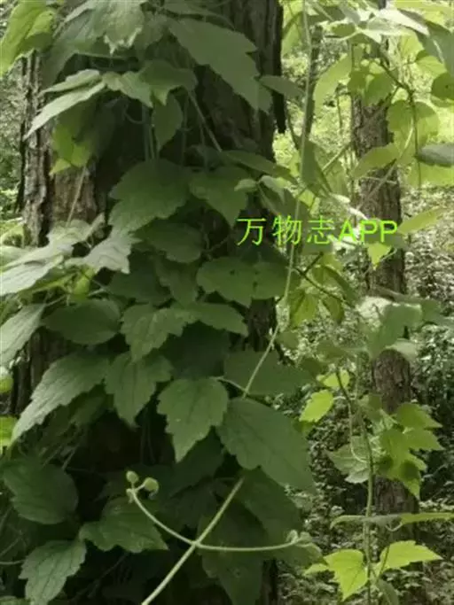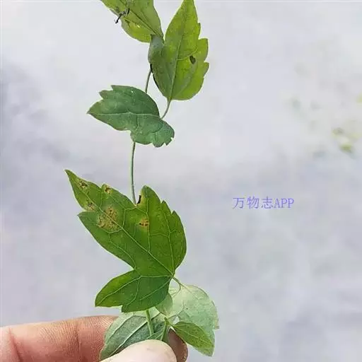 藤本。小枝和花序梗、花梗密生贴伏短柔毛。三出复叶,连叶柄长5-17厘米,叶柄长3-7厘米;小叶片卵形或宽卵形,长2.5-8厘米,宽1.5-7厘米,常有不明显3浅裂,边缘有锯齿,上面疏生贴伏短柔毛或无毛,下面通常疏生短柔毛或仅沿叶脉较密。
