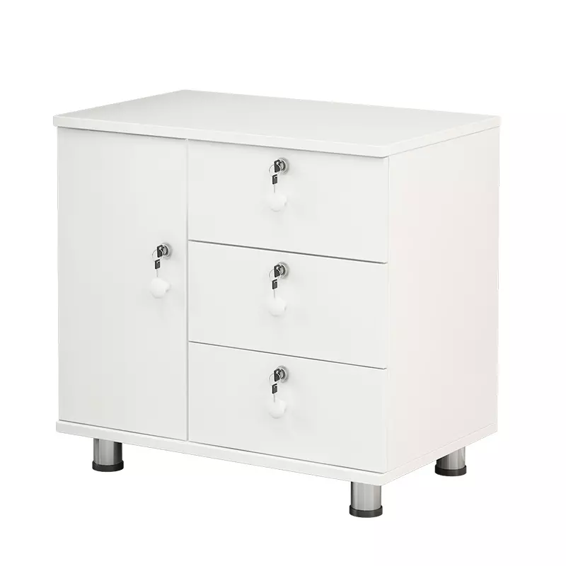 床头柜(bedside cupboard ),床头柜分为侧柜和主柜,侧柜是设置在床头左右两侧的小柜子,一般设置在卧室、宿舍、病房、旅馆等有床的房间内使用,供存物取物吃饭之用。侧柜标配的有上部隐形就餐盘、抽屉,下边柜子、可置物门、毛巾架、杂物挂钩、轮子等组件,是小型半封闭式单抽可移动式储物立柜。供生活起居存放生活物品之用。以塑钢、不锈钢、金属喷塑等材料。设计与现代常见的床边柜相仿。具有防潮防湿防水浸、抗冲击、不褪色抗老化、无缝防蟑螂、密闭防鼠、易清洁精巧、移动方便等特点。有助于物品的安放。