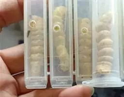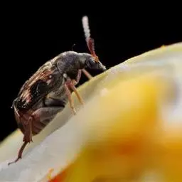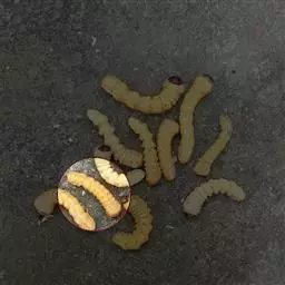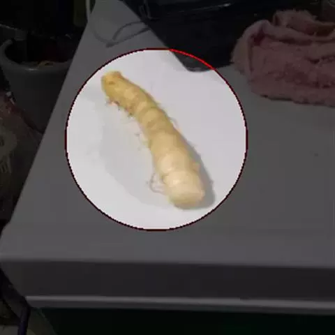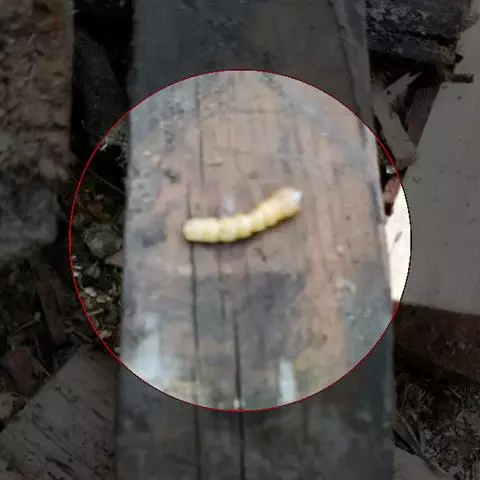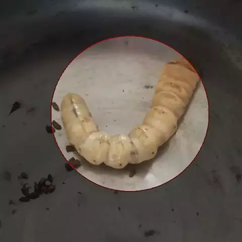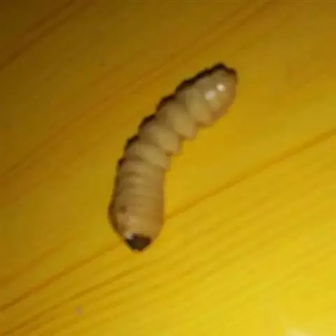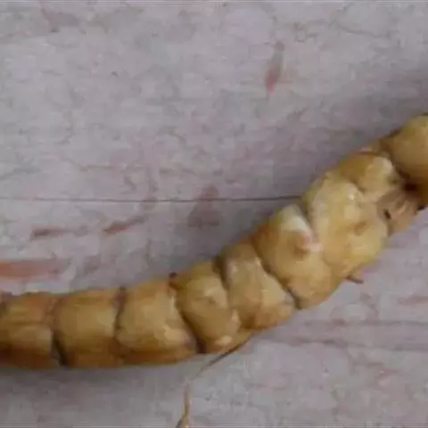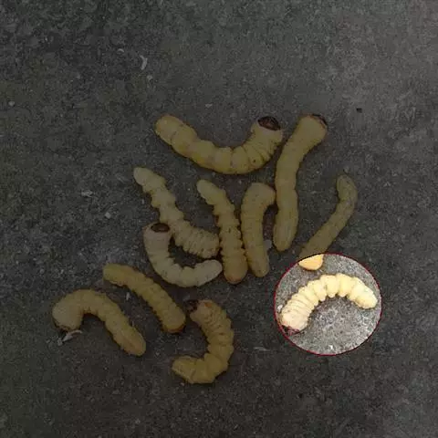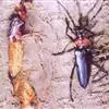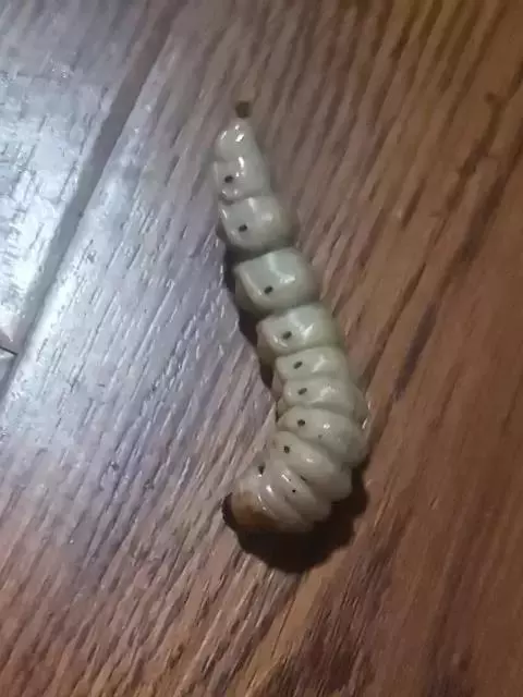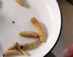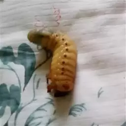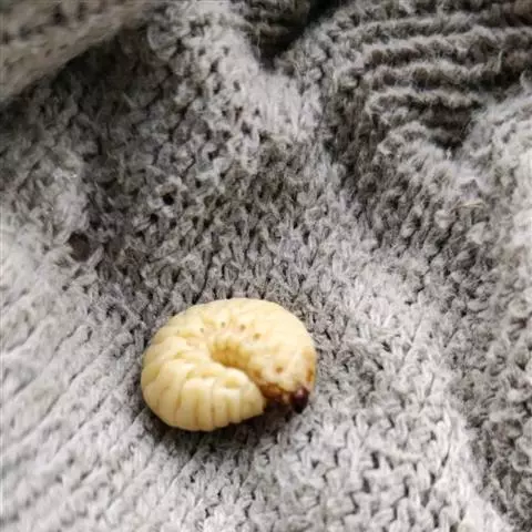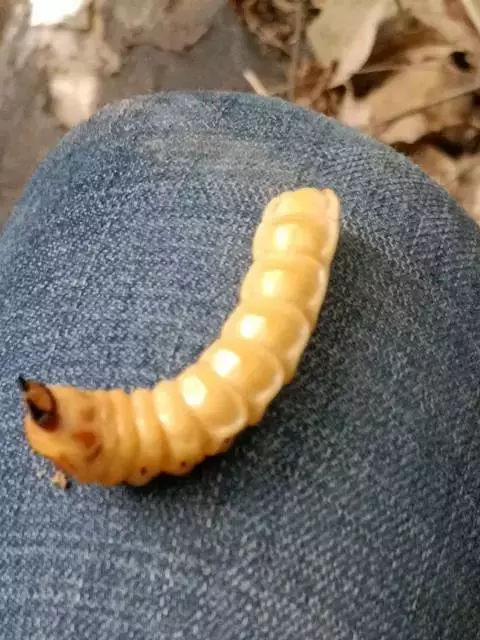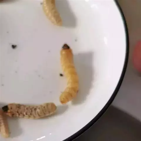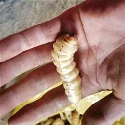 斗米虫为锈色粒肩天牛的幼虫,锈色粒肩天牛主要危害槐树Sophora japonica,…