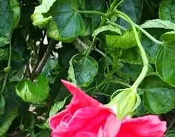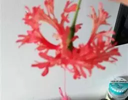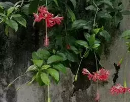 形态特征:同扶桑基本一致,主要区别为花梗细长,大而下垂,花瓣深烈成流苏状,而且向上卷,如同垂吊的花灯;单体雄蕊和雌蕊要比花冠长很多,远伸出花冠外。