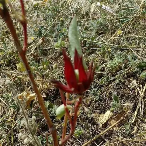 马坦(Matensis),茎干红色,叶灰绿色,单瓣,花洋红色,具深红色脉纹及花心。