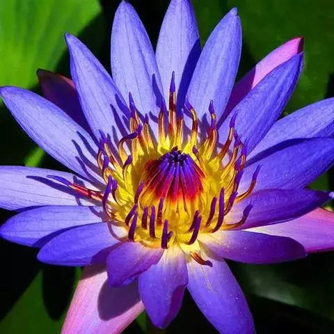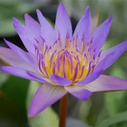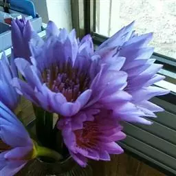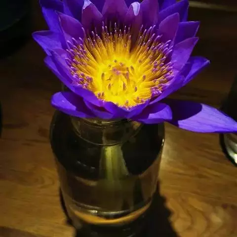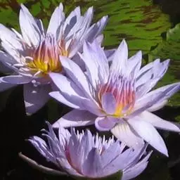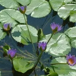 蓝鸟(学名:Nymphaea 'Blue Bird'):是多年生水生草本;根状茎肥厚。叶二型:浮水叶圆形或卵形,基部具弯缺,心形或箭形,常无出水叶;沉水叶薄膜质,脆弱。花形美丽,浮在或高出水面;萼片4,近离生;花瓣成多轮,心皮环状,贴生且半沉没在肉质杯状花托,且在下部与其部分地愈合,上部延伸成花柱,柱头成凹入柱头盘,胚珠倒生,垂生在子房内壁。浆果海绵质,不规则开裂,在水面下成熟;种子坚硬,为胶质物包裹。