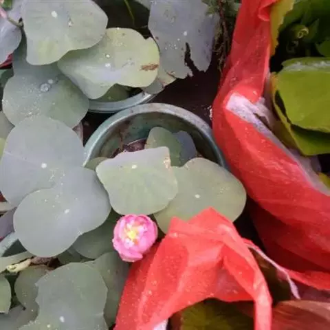 红花睡莲,多年生浮水植物。叶浮于水面,卵形,革质,表面绿色,背面紫红色,幼叶红色,花昼开夜合,浮于…