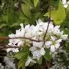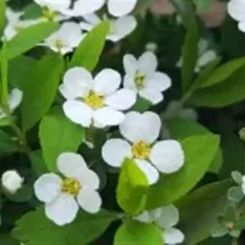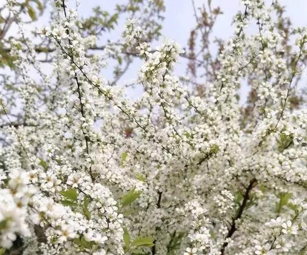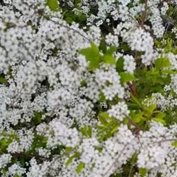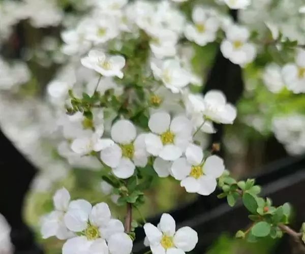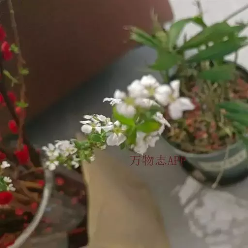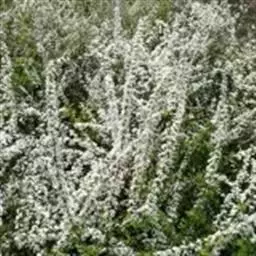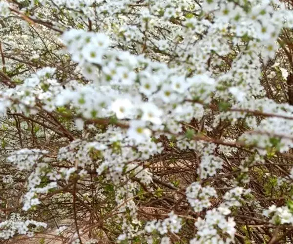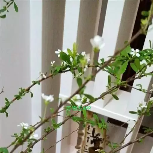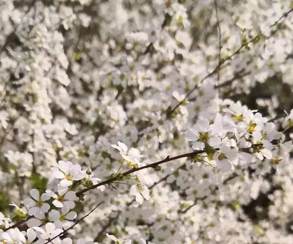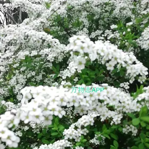 珍珠绣线菊(学名:Spiraea thunbergii Bl.):蔷薇科、绣线菊属灌木,高可达1.5米;枝条呈弧形弯曲细长开张,小枝有稜角,无毛;叶片线状披针形,基部狭楔形,叶柄极短或近无柄,伞形花序无总梗,花3-7朵,基部簇生数枚小形叶片;萼筒钟状,萼片三角形或卵状三角形,花瓣倒卵形或近圆形,白色;花盘圆环形,子房无毛或微被短柔毛,蓇葖果开张,4-5月开花,7月结果。