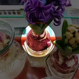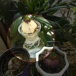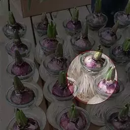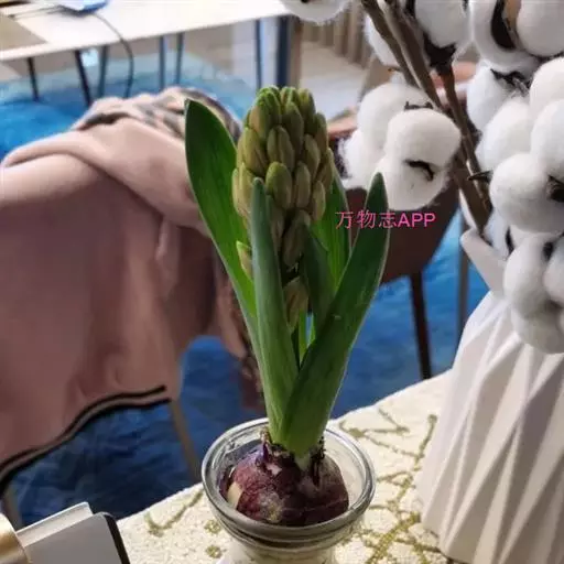 风信子水养要求水位离球茎的底盘要有1-2cm的空间,让根系可以透气呼吸,严禁将水加满没过球茎底部。可在12月份将种球放在阔口有格的玻璃瓶内,加入少许木炭帮助防腐和消毒。其种球仅浸至球底即可,然即放置在阴暗的地方,并用黑布遮住瓶子,这样约经过20多天的全黑环境萌发后,再放到室外让它接受阳光的照射,初期每天照1-2小时,后逐步增至7-8小时,大多数在天气好的情况下,到春节便能开花。