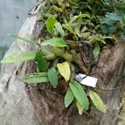 • 大苞鞘石斛:茎斜立或下垂,肉质状肥厚,圆柱形不分枝,具多节;节间多少肿胀呈棒状。叶薄革质,二列,狭…