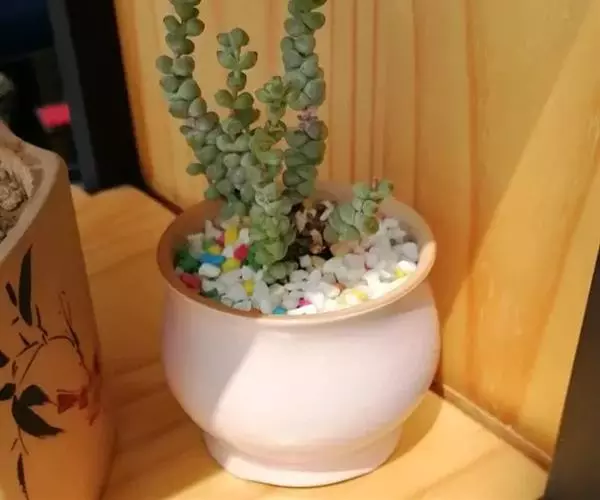 玉米石是景天科、景天属植物。多年生草本多浆植物。植株低矮丛生,多分枝。叶膨大成圆筒形、卵形或近小球形,…